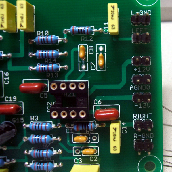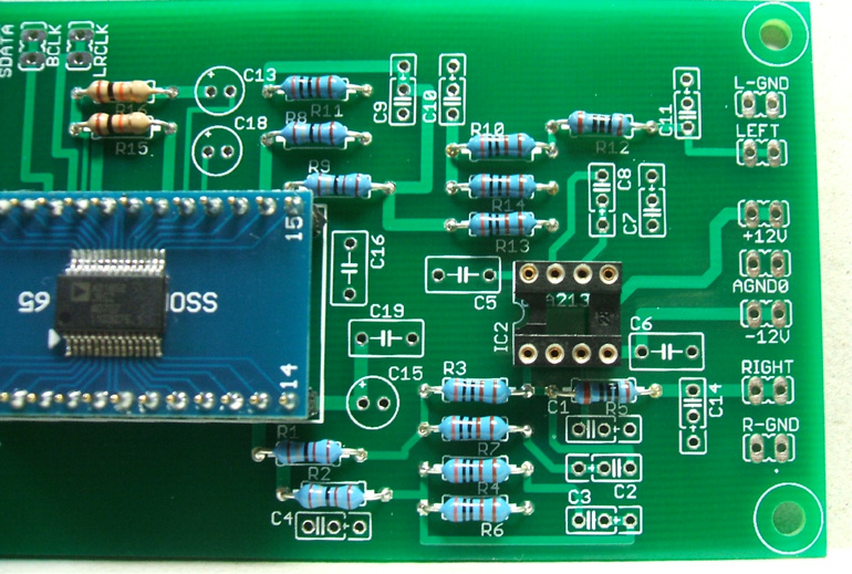 完成するとこんな感じになります。付属しているOPAMPはOPA2134です。